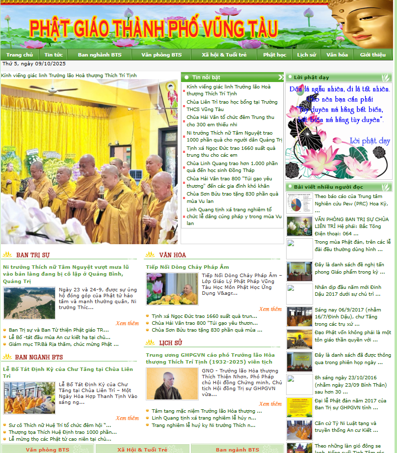 Trang thông tin Phật giáo Vũng Tàu, kết nối cộng đồng Tăng Ni và Phật tử. Cung cấp tin tức, sự kiện và giáo lý Phật giáo.